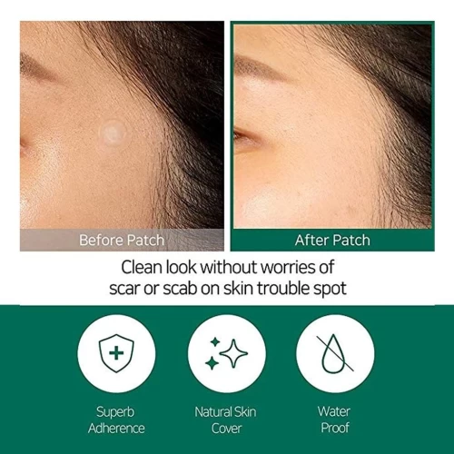 | فوائد | تمتص الإفرازات السائلة وتحمي الحبوب من الالتهاب. تمنع تكون الندبات وآثار الحبوب بعد علاجها. مقاومة للماء ورقيقة الحجم. مكونة من مواد صديقة للبشرة الحساسة. |